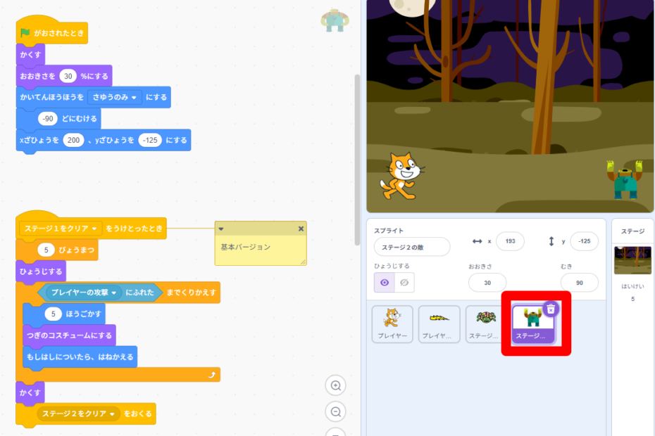 「にゃんこ大戦争」のようなタワーディフェンスを作ろうとしたときや、「シューティングゲーム」で自分の弾と敵の当たり判定を作ろうとしたときなど、クローン同士の当たり判定がうまくできずに悩んだ方はいませんか?実は、クローン同士… 続きを読む »クローン同士の当たり判定の作り方|同時実行の落とし穴